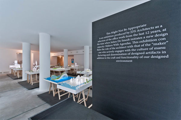 ‘This Might Not Be Appropriate’ («Это невозможно присвоить») – под таким названием в арт-галерее Vanhaerents, в самом центре Брюсселя, прошла выставка, на которой представлена ретроспектива проектов JDS Architects, выполненных за последние 12 лет, начиная со времени, когда основатель компании Жульен де Шмедт (Julien De Smedt) инициировал новое направление в архитектуре: «Творцы с программой действий» (Makers With Agendas).