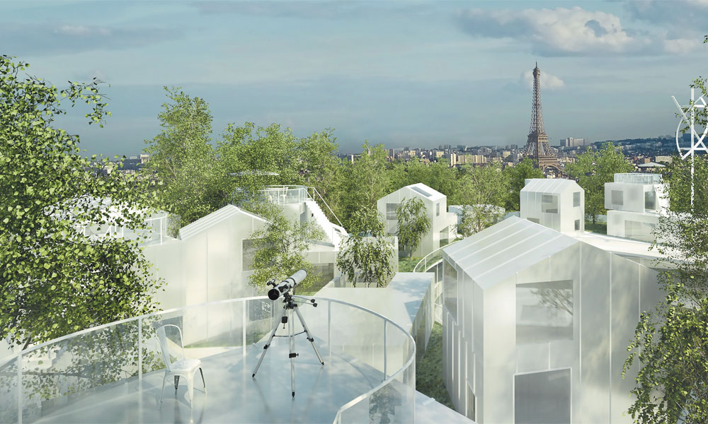 Проект «Тысяча деревьев» – совместная работа двух архитектурных бюро – японского и французского. Sou Fujimoto Architects постоянно направляет свои усилия на то, чтобы осмыслить отношения между человеком, зданием и природой, между природой и архитектурой в целом. Сотрудники Manal Rachdi OXO Architects – молодого парижского офиса – также хотят видеть природу в самом сердце города. Вместе они работают над тем, чтобы создать новый силуэт на городском горизонте французской столицы.